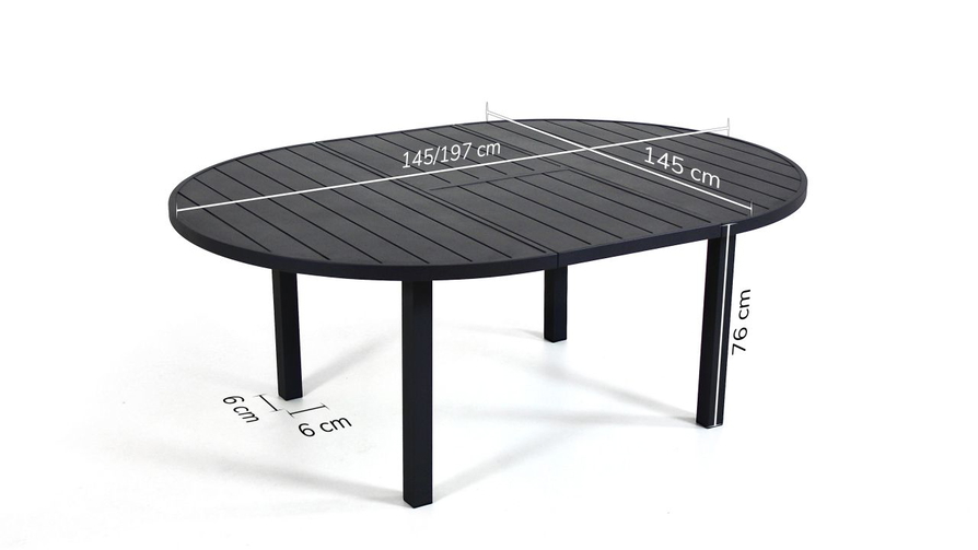 Aus einem runden Tisch mit einem Durchmesser von 145 cm wird durch ein paar einfache Handgriffe ein ovaler Tisch mit 197 cm Länge. Ganz automatisch entfalten sich im mittleren Bereich der Tischplatte die Leisten zur Verlängerung. Â